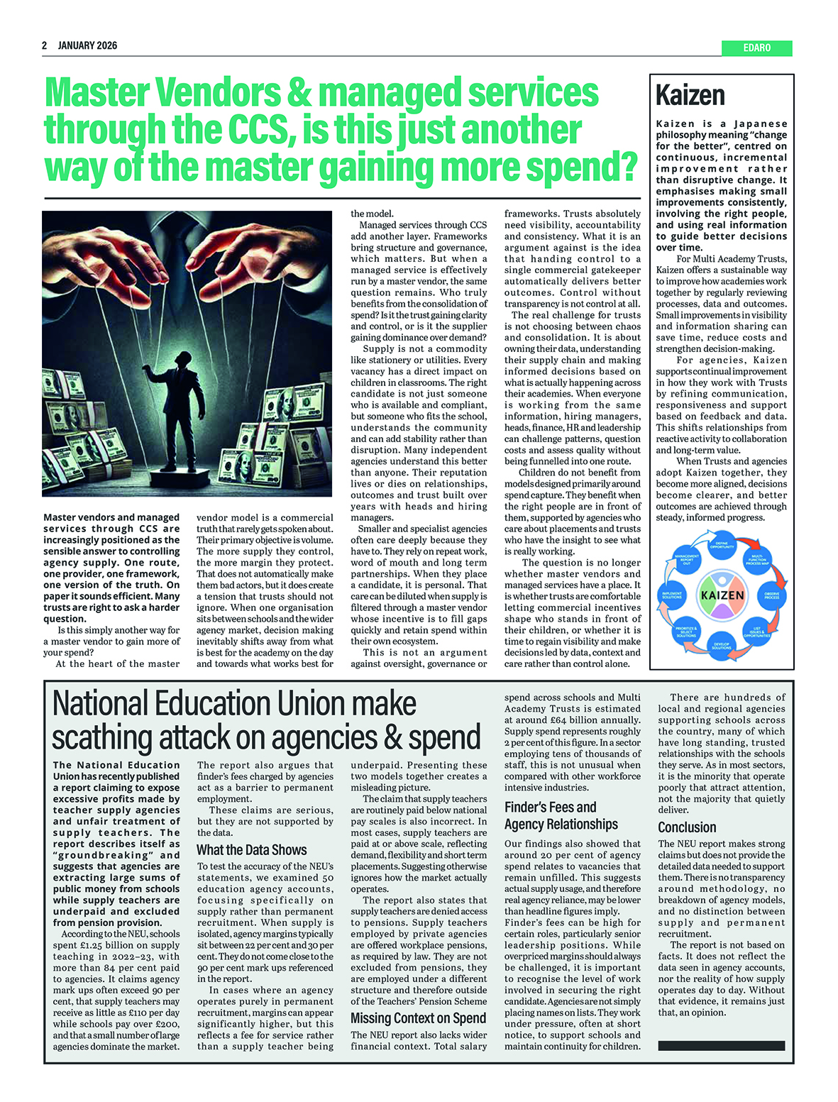 From navigating DfE capped margins to analysing the efficacy of the Master Vendor model and tackling the latest NEU claims, this edition is packed full of valuable insights.